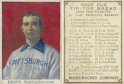 By 1952, Tip High was properly versed in issuing baseball playing cards. After the Pittsburgh Pirates received the World Sequence in 1909, the model honored the group with a 25-card set in 1910 that even included a card for Forbes Area and the Tip High Boy Mascot. In contrast to tobacco playing cards, which had been frequent for the period, the Tip High set was practically sq., measuring 1-13/16” x 2-3/8”. The playing cards have a pastel portray of the group member on the entrance, and within the white border beneath, their identify and WORLD’S CHAMPIONS written. The backs include a litany of knowledge such because the set guidelines, an advert for the Ward-Mackey Firm, and a mail-in provide of the whole set, in return for 50 bread labels. The Forbes Area and Boy Mascot playing cards are extremely wanted, second solely to corridor of famers Honus Wagner, Fred Clarke, Vic Willis, and group President Barney Dreyfuss. An entire set, in close to mint situation has been valued at roughly $120,000.