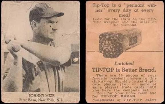 The most important set of playing cards Tip High and Ward’s ever launched was their 1947, 163-card set, notable because of its issuance throughout WWII. Most of the gamers featured within the set performed within the Main Leagues throughout wartime. That stated, the set carries a price of $20,000 in close to mint situation and has a black-and-white participant picture on the entrance, with a white strip on the backside giving their identify, place, and group. The playing cards measure 2-1/4” x 3” and include a pleasant Tip High commercial on the again, stating on the high, TIP TOP IS A PENNANT WINNER EVERY DAY AT EVERY MEAL (there are a number of variations) and on the backside, ENRICHED TIP TOP IS A BETTER BREAD. The Warren Spahn and Yogi Berra playing cards are seen as their rookie playing cards, whereas Bobby Doerr, Ralph Kiner, Ernie Lombardi, Johnny Mize, Phil Rizzuto, Enos Slaughter, and Pirates coach Honus Wagner spherical out the remainder of the Corridor of Famers pictured.