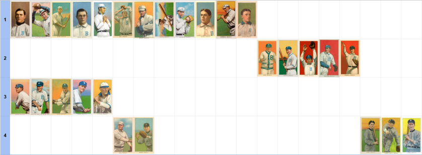 What I hope to do right here is characterize the second and third T206 print teams in a means that’s removed from a random Monster mash and may show helpful in understanding the set’s evolution. To maintain issues from getting too summary, I’ll begin with this association of the Brooklyn staff set, organized by print group.