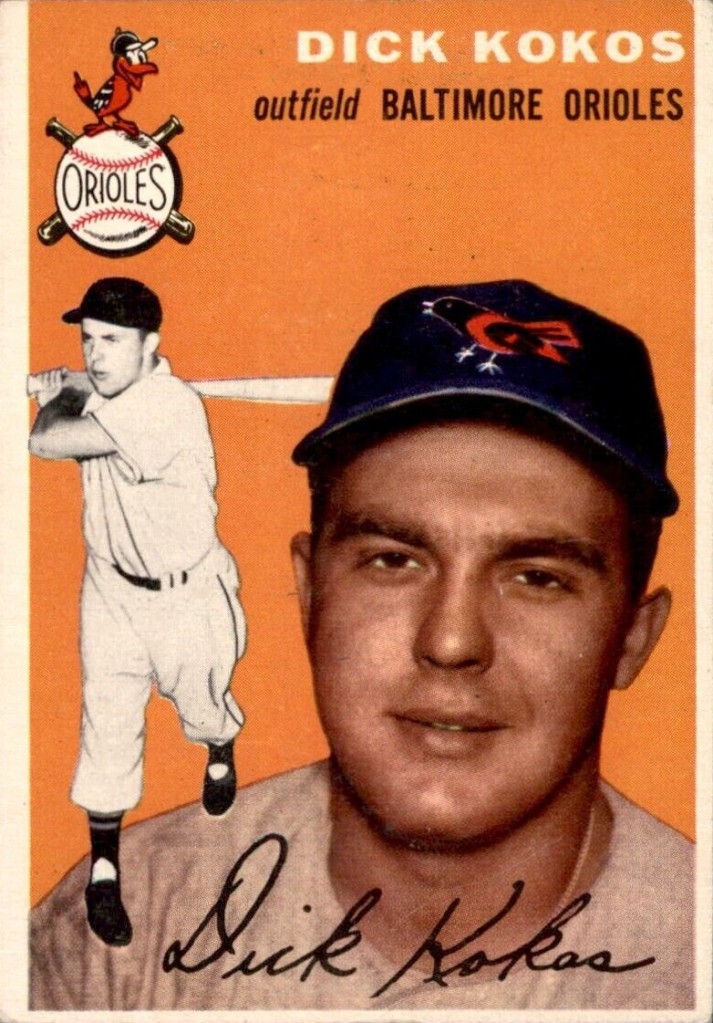 Just a few years again, I obtained a 1954 Topps Dick Kokos #106 in a social media card giveaway. It’s not in itself overly exceptional and I claimed it for my niece who likes the cartoon oriole brand.